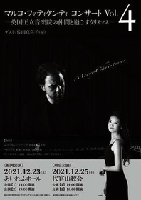 マルコ・ファティケンティ 英国王立音楽院の仲間と過ごすクリスマス『マルコ・ファティケンティ コンサートVol.4』が2021年12月23日(木)にあいれふホール(福岡県福岡市)にて、12月25日(土)に代官山教会(東京都渋谷区)にて開催されます。チケットはカンフェティ(運営:ロングランプランニング株式会社、東京都新宿区、代表取締役:榑松 ⼤剛)にて発売中です。