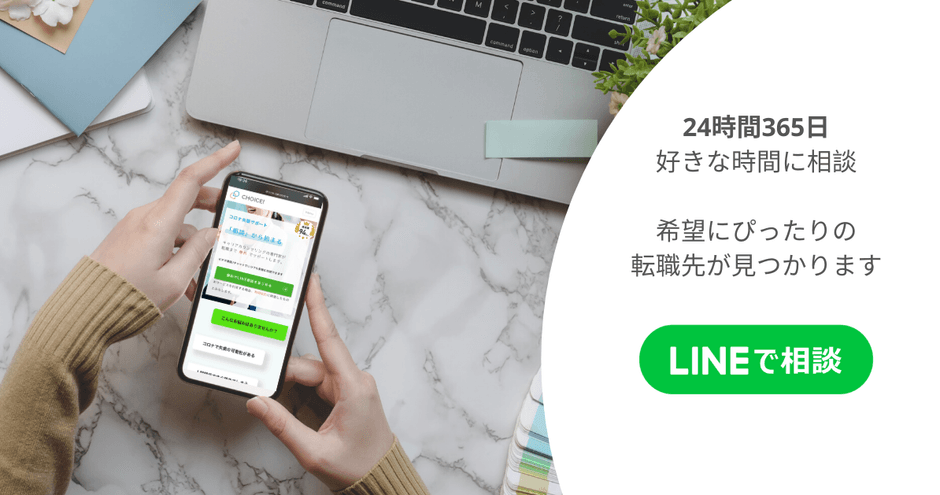 24時間365日、お馴染みのツールLINEから国家資格をもつキャリアコンサルタントに転職相談ができます。