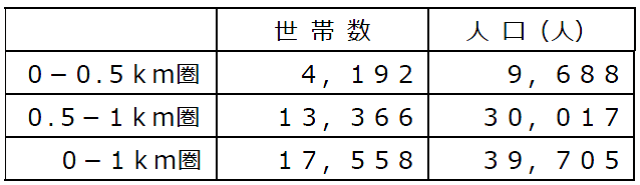 ・店舗から1㎞圏内は、単身世帯が37.8%、2人世帯が27.1%と少人数世帯が約6割を占めます。