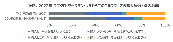 ・2022年のユニクロ・ワークマン・しまむらでの購入経験者は全体の約3割。20-30代は5割以上。