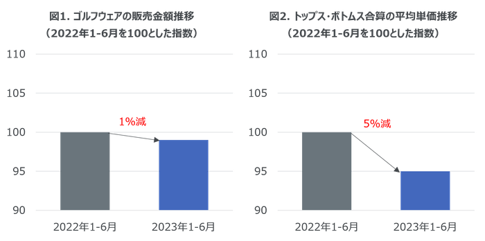 ・2023年上半期のゴルフウェア販売は金額前年比1%減。