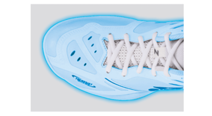 つま先部内側のアウトソールラバーの巻き上げを最適化することで屈曲性が向上。動き出しやすく、ダッシュ力を高めます。