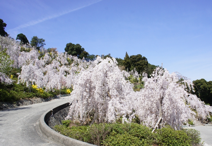 展望台には、大鳴門橋をバックに満開のしだれ桜が撮影できる絶景のスポットがあります。桜が終わる頃にはツツジ17000本が開花。その他、もみじ200本、黄梅2000本、キリシマ600本、黄金マサキ1000本、サザンカ1000本、椿200本など季節の花木も楽しめます。