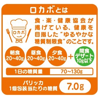 ロカボ協会が推奨する間食・デザートでの1日あたりの糖質目安量を10g以下とする中で、1個包装あたりの糖質量を7.0gに抑えた設計になっています。さらにカロリーも49kcalで、6個包装入りになっているので、糖質やカロリーを調整しながら食べることができます。