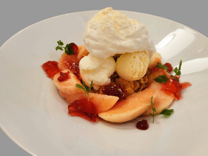 『国産白桃とローズヒップジュレのパフェ』