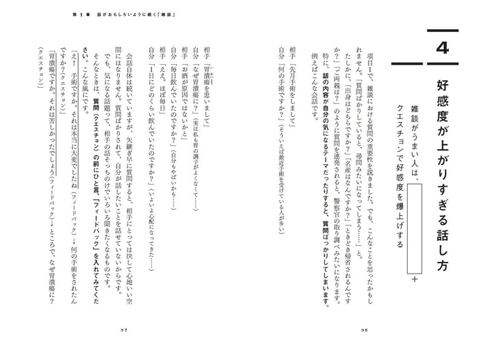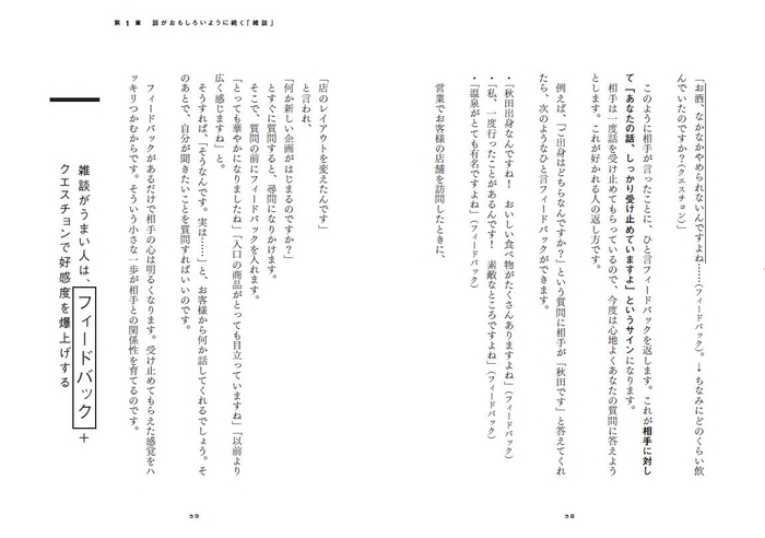 だから本書には、「雑談」から「初対面の会話」「人前での話し方」「わかりやすい説明」「意見が合わない人との会話」そして「相手が喜ぶ聞き方」や「会話を引き出す質問」に至るまで、曖昧な表現を一切排除して、即実践できる方法だけを載せました。