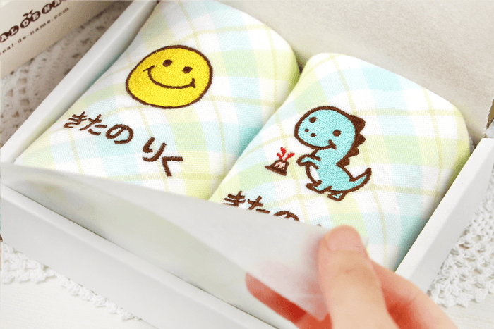 お子さまのお名前を刺繍するため、お子さまの誕生を祝う気持ちが伝わりやすいオンリーワンギフトです。21種類の中から、1枚ずつお好きなデザインを選ぶことができます。
