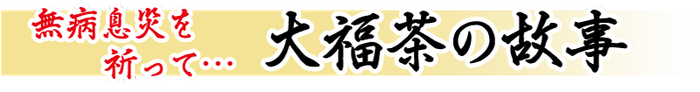 これに因み、正月に一年の無病息災を祈願して皇が服する茶「皇服茶」が始まり、後に庶民に拡がり、「大福茶」として近畿一円に定着したといわれています。