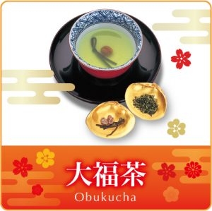 京都の故事にならい、元旦に新年の万福息災を祈念して福梅・福昆布を添えてお茶をいただくのが大福茶です。