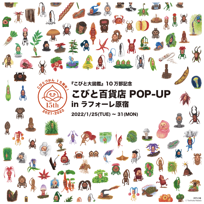 子どもたちに大人気の書籍シリーズ「こびとづかん」(なばたとしたか・作、ロクリン社・刊)は現在15周年。また『こびと大図鑑』(2015年刊行)の発行部数がこのたび10万部を突破いたしました。 これを記念して、2022年1月25日(火)から1月31日(月)までの1週間、ラフォーレ原宿1.5階 BASE Lab. にて『こびと百貨店 POP-UP in ラフォーレ原宿』を開催いたします。