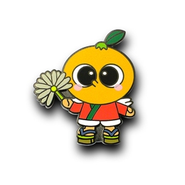 万葉集にも歌われている美しい海岸のある和歌山県日高郡由良町では、早生ミカンの妖精「ゆらの助」というゆるキャラが観光PRに大活躍しています。今回当社に製作のご依頼いただきました由良町商工会様は、由良町とこのゆるキャラ「ゆらの助」をもっとPRしたいという目的で、オーダーメイドの「ゆらの助ピンバッジ」を製作されました。