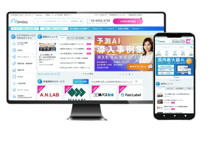 AIsmiley(アイスマイリー)は企業のDXを推進する国内最大級のAIポータルメディアです。人工知能を搭載した製品・サービスの比較や資料請求を無料でご利用いただけます。