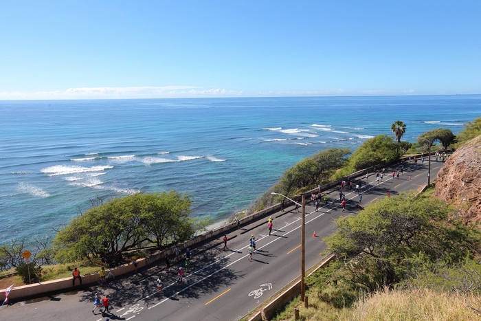 アラモアナ公園前をスタートした後、世界的に有名なワイキキビーチ、ダイヤモンドヘッドを経てハワイカイで折り返し、カピオラニ公園でフィニッシュするという壮大なシーサイドコース。ダイヤモンドヘッド付近の短い坂を除けば、ほとんどが平地という走りやすい設定です。