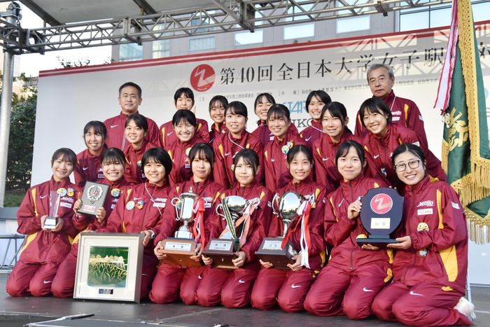女子駅伝部は10月30日(日)、仙台市で開催された第40回全日本大学女子駅伝対校選手権大会に出場し、2時間03分11秒で6年連続7回目の優勝を果たしました。6連覇はこの大会で史上初の快挙で、全6区間のうち5区間で区間賞を獲得。2区間で区間新、1区間で区間タイ記録を樹立しました。