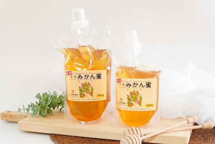 内容:和歌山県に咲くみかんの花から今年採れたばかりの蜂蜜を、たっぷり使えて持ち運びやすい大容量パウチに詰めました。トーストやヨーグルトにもおススメです。