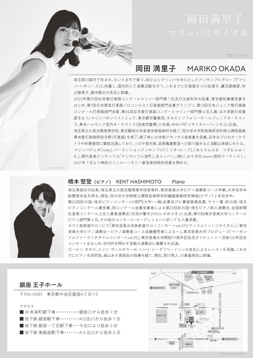 2022年、第37回日本管打楽器コンクールマリンバ部門にて見事優勝を果たした俊英・岡田満里子が、待望の自身初となる単独でのリサイタルを開催。