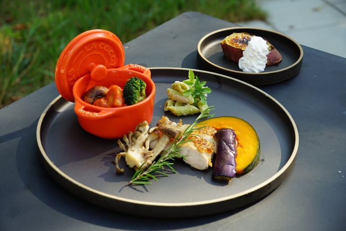 石の上でじっくり焼き上げたサツマイモに、特選カソナード(粗糖)をふりかけ、バーナーで表面を香ばしく焼き上げてブリュレ風に仕上げます。ほくほくとした甘みと、香ばしいカラメルの香りが広がる秋限定スイーツです。