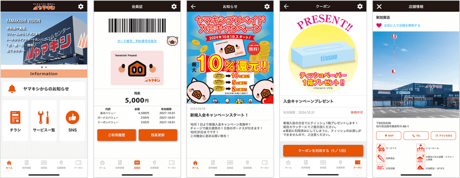 山岸は、石川県を中心に9店舗のホームセンター「ヤマキシ」を展開し、食品や日用品をはじめ職人向けの資材関係に至るまで、15万アイテムを超える多種多様な商品を取り扱っています。今回、店舗を利用するお客様の満足度向上・再来店促進を目的に、使いやすく高い還元率の特典を付与できる「ヤマキシアプリ」を導入されました。山岸のご担当者様からは、「多くのお客様から『ポイントカードを導入して欲しい』と要望を頂いていました。よりお客様に特典を付与でき、便利にご利用いただけるツールを検討する中で、他のキャッシュレス決済サービスより手数料率も低く、常連のお客様に特典を還元しやすい独自Payに着目しました。カードとアプリを利用できるようにすることで、より多くのお客様にご利用いただきたい」とのコメントを頂いています。
