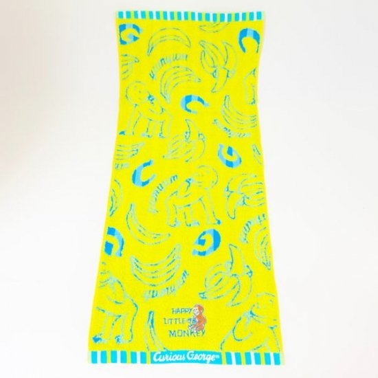 まずは、バナナのデザインもかわいい、おさるのジョージのタオルです。ビタミンカラーのイエローが鮮やかで、全面に描かれたバナナもキュートですよね。