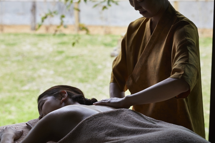 舞踊のリズムを取り入れたオイルトリートメントと、滞在を振り返る薬草茶の時間