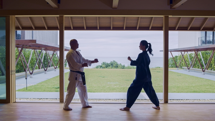 緊張と弛緩の大きな波を迎える2日目には、沖縄発祥の武術である琉球空手を体験します。体験する場所は星のや沖縄の施設内にある道場です。呼吸・姿勢・意識に焦点を当てて、型の動きを繰り返し行いながら、自己鍛錬を目的とする空手の心得についても学びます。