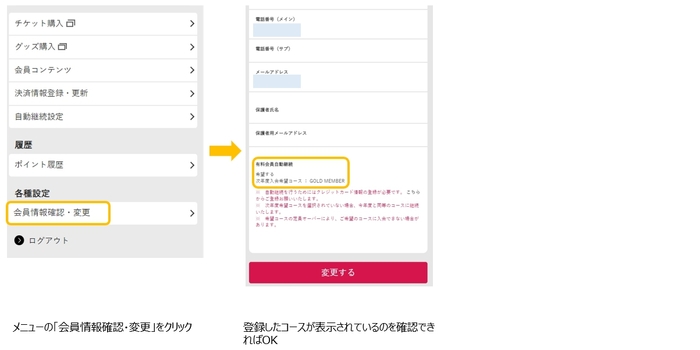 ファンクラブのマイページのメニューより画面の案内に沿ってお手続きください。