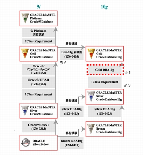 「ORACLE MASTER Gold Oracle Database 10g」の認定では、試験科目合格とは別に、下記URL先のリストのうち最低1つを履修することが条件となります。