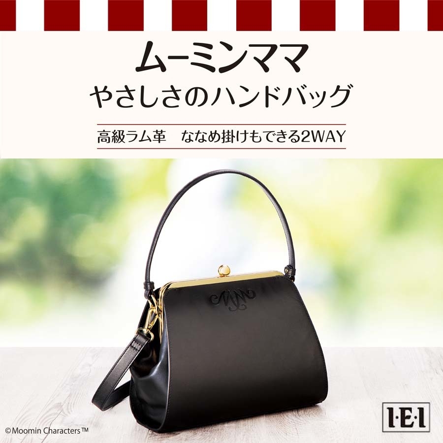 価格は、29,800円(税別)、ななめ掛けもできる2WAY「ムーミンママ やさしさのハンドバッグ」は、I・E・I オリジナルショップにて好評予約受付中です。