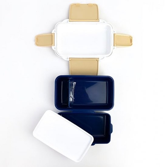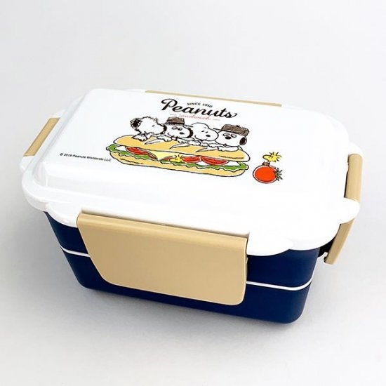 4点でカッチリロックしてくれる、2段式のお弁当箱もご用意しています。ブラザーズのデザインで、電子レンジも使用可能です。