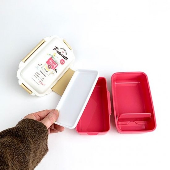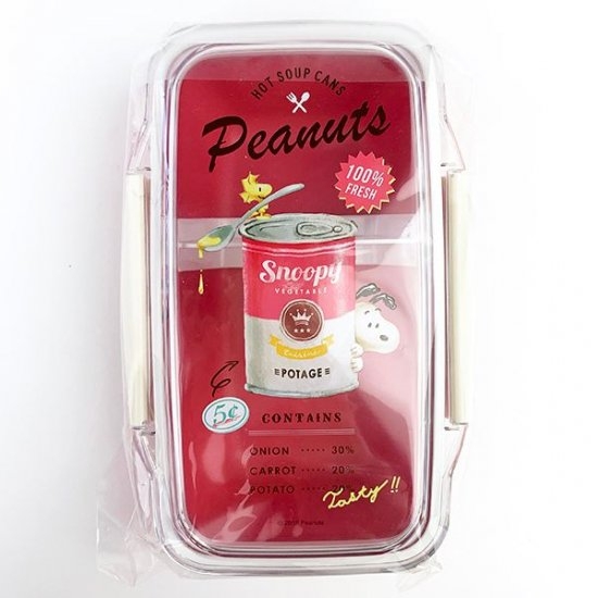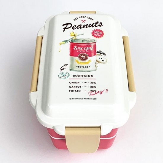 同じく2段式のこちらは、ポタージュ缶のデザインです。ひょこり顔を出したスヌーピーや、ピンクのカラーもキュート系ですね♡