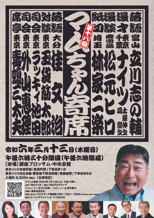 株式会社TBSグロウディア(東京都港区、代表取締役:園田憲)は、第18回マムちゃん寄席の製作を担当し開催を決定しました。