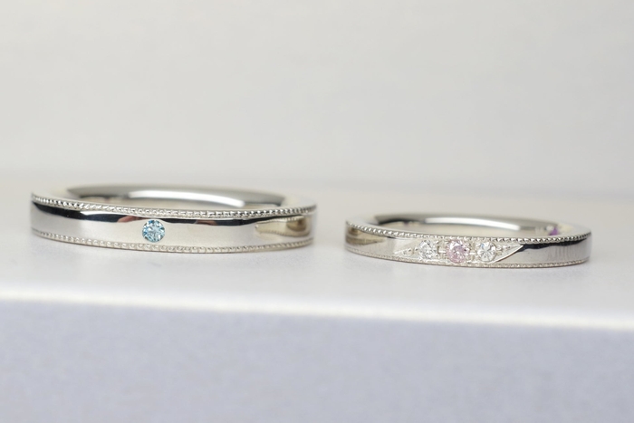ミルグレイン(B加工)/レーザー刻印(C加工)/カラーコーティング(C加工)/誕生石(D加工)