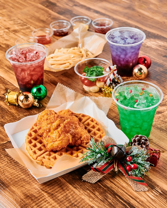 東京ミステリーサーカス1F「HIMITSU COFFEE」では、クリスマスイブ限定のフードを販売。ワッフルチキンや限定カクテルなど、クリスマス気分を存分に満喫できるメニューをぜひご賞味ください。