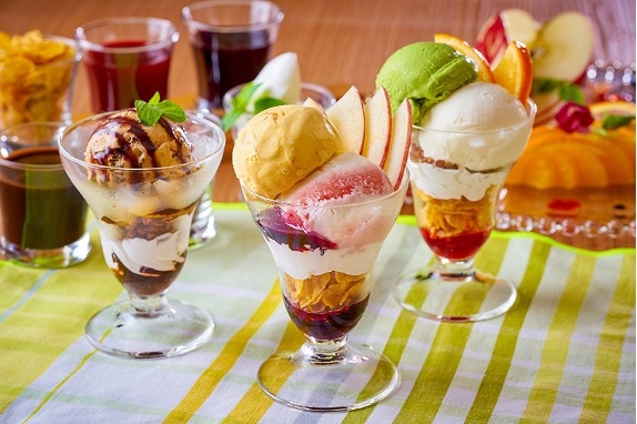 アイスクリームやフルーツ、ソースやトッピングを種類豊富にご用意し、オーダーを受けたスタッフがお客様だけのオリジナルパフェを仕上げます。