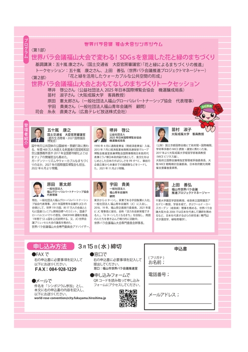 広島県福山市では、「第20回世界バラ会議福山大会2025」開催800日前のイベントとしてシンポジウムを開催します。