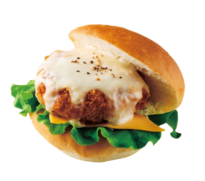モッツァレラ・ゴーダ・エメンタールの3種類のチーズを配合したチーズソースをコロッケの上にたっぷりとトッピング!どこから食べでもチーズの味わいが広がる、チーズ好きにはたまらないグラタンコロッケバーガーに仕上がりました。