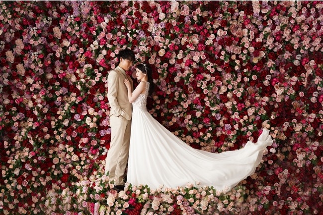 一面お花の壁が登場!フォトウェディングの「スタジオAQUA新宿店」スタジオリニューアル!