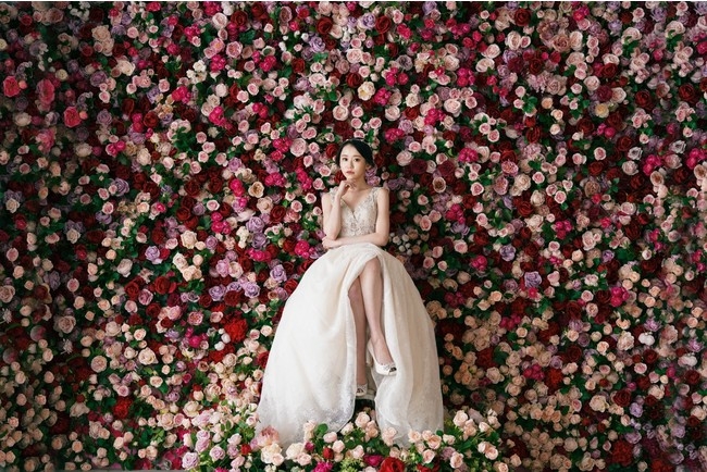 赤やピンク、ラベンダーカラーのお花が彩る背景は、お二人でのロマンチックなショットはもちろん、ご新婦様のソロショットにもぴったり。頭から足元まで全面お花に囲まれた写真が撮れるのが特徴で、ウェディングならではの特別感が溢れ、雰囲気のある写真が撮影できます。