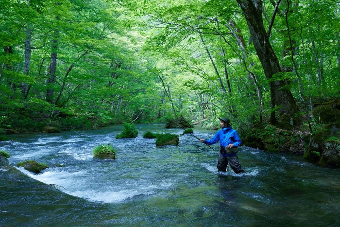 奥入瀬(おいらせ)渓流沿いに建つ唯一のリゾートホテル「星野リゾート 奥入瀬渓流ホテル」では、2023年4月17日、国立公園の大自然を気の向くままに堪能する「奥入瀬渓流プライベートフィッシング」が新登場します。国立公園の大自然の中、絶好の釣りスポットで渓流釣りを楽しめます。自分流に好きなギアをカスタマイズできる「奥入瀬フィッシングセット」や、早朝の静かな森の中で自然と向き合う時間を楽しむために用意した「渓流サンドイッチ」など、国立公園の大自然を堪能できるプログラムです。