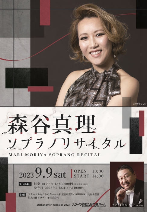 スターツおおたかの森ホール主催『森谷真理ソプラノリサイタル』が2023年9月9日(土)にスターツおおたかの森ホール(千葉県流山市)にて開催されます。チケットはカンフェティ(運営:ロングランプランニング株式会社、東京都新宿区、代表取締役:榑松 大剛)にて6月22日(木)より発売です。