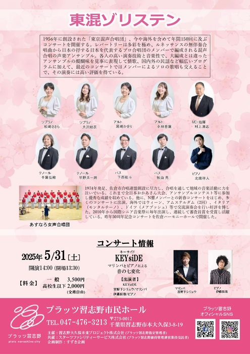 東京混声合唱団 ゲストにあすなろ女声合唱団迎えプラッツ習志野にて初コンサート開催決定!