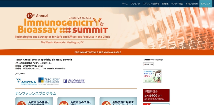 株式会社グローバル インフォメーションでは、皆様の利便性を図る為に、日本語、英語、韓国語、中国語で「Tenth Annual Immunogenicity Bioassay Summit-第10回免疫原性バイオアッセイサミット」の情報を提供するとともに、会議の参加のお申し込みを承っております。