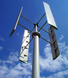 発電機はダイレクトドライブ方式で駆動させているので、発電効率が高く、機械的騒音もありません。垂直軸型風車は強風時にも安定した回転を維持する安全設計で、風速60m/秒にも耐え得る強度を有しています。発電量に応じて、200W〜5KWの風車を提供することが可能です。