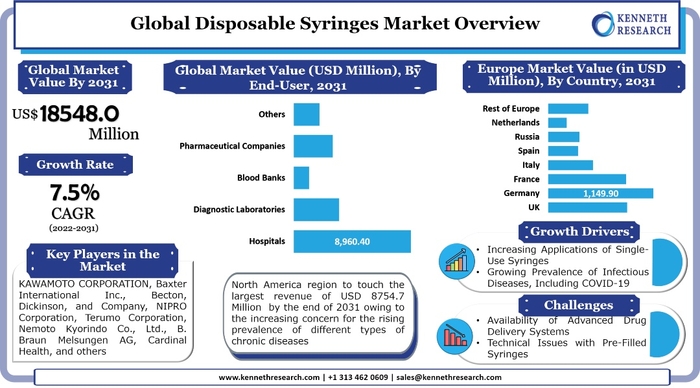 リサーチネスターの一部門であるケネスリサーチはこのほど、使い捨て注射器市場と題する調査報告書を発表した。2031年の世界需要分析と機会展望」(2022年7月29日付)を発表しました。市場の産業需要分析、市場の成長に影響を与える様々な要因などを詳細に解説しています。2021-2031年の予測期間、市場価値、市場数量、成長率、セグメント、市場プレイヤー、成長ドライバーなど、市場成長を提供しています。調査方法には、市場評価と予測データの算出に基づく過去と現在のデータの収集が含まれます。本レポートのデータ収集には、一次調査と二次調査の両方が含まれます。