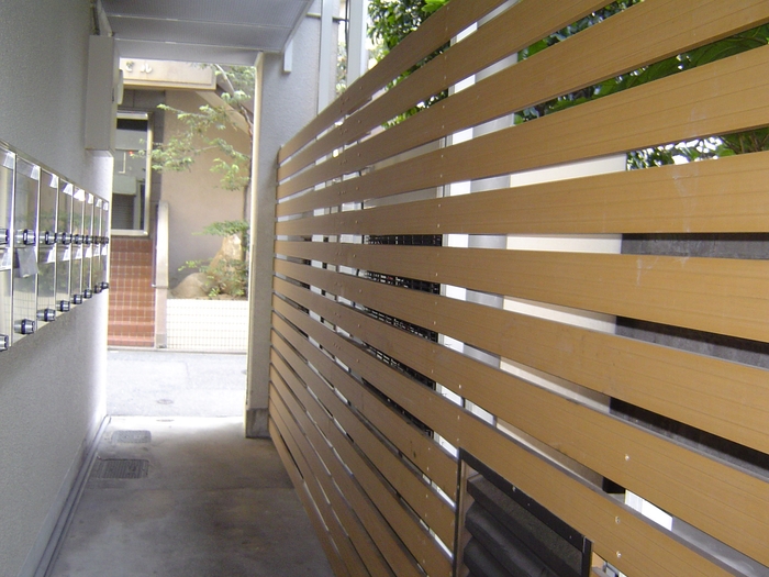 (1)エアコン室外機を隠すためのパーテーションの設置