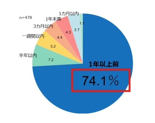 朝の疲れを感じる方のうち、7割以上が1年以上感じている。朝の疲れが慢性化している。