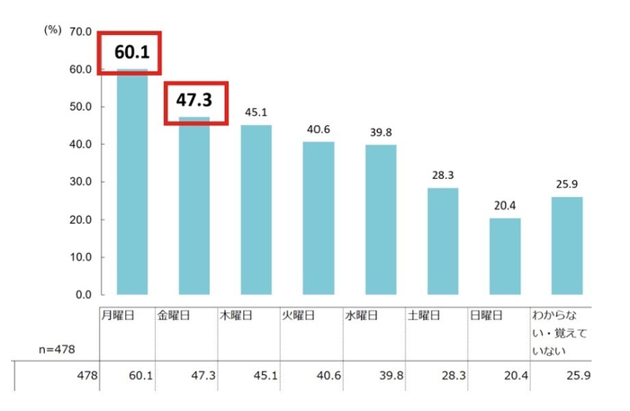1週間の中で最も疲れを感じる曜日は、月曜と金曜。週末に朝の持ち越し疲労予防体験