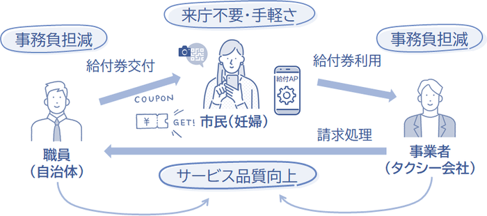 妊婦向けのタクシー利用割引券を市役所等にお越しいただくことなくお渡しできることは、市民サービスの向上や事務負担の軽減につながると考えられます。