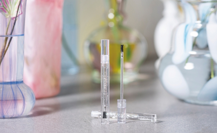 本体はオールクリア容器にコンパクトブラシを採用し、眉毛の量を問わず調整して使いやすい設計。