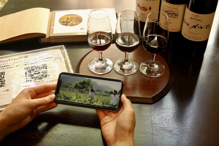 地元塩尻の「NAGANOワイン」を、作り手のこだわりが聴けるオンライン動画を視聴しながら、テイスティングできます(ノンアルコールもあり)。オリジナルのワインガイドブックも読みごたえがあります。